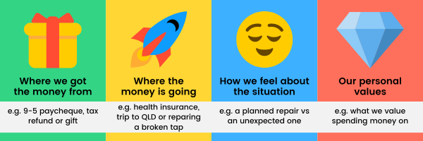 It’s important to understand how we frame the situation in which we receive and spend money because sometimes we might realise we’re spending the money we receive unexpectedly in a way that doesn’t align with our financial goals.
